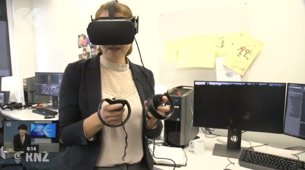 Radio New Zealand came to the Miramar Creative Centre last week to catch up with the Minimum Mass team. Science and Innovation reporter Charlier Dreaver interviewed us and was a great sport about getting into the Oculus headset and playing around with our Direct Manipulation interaction prototype.
